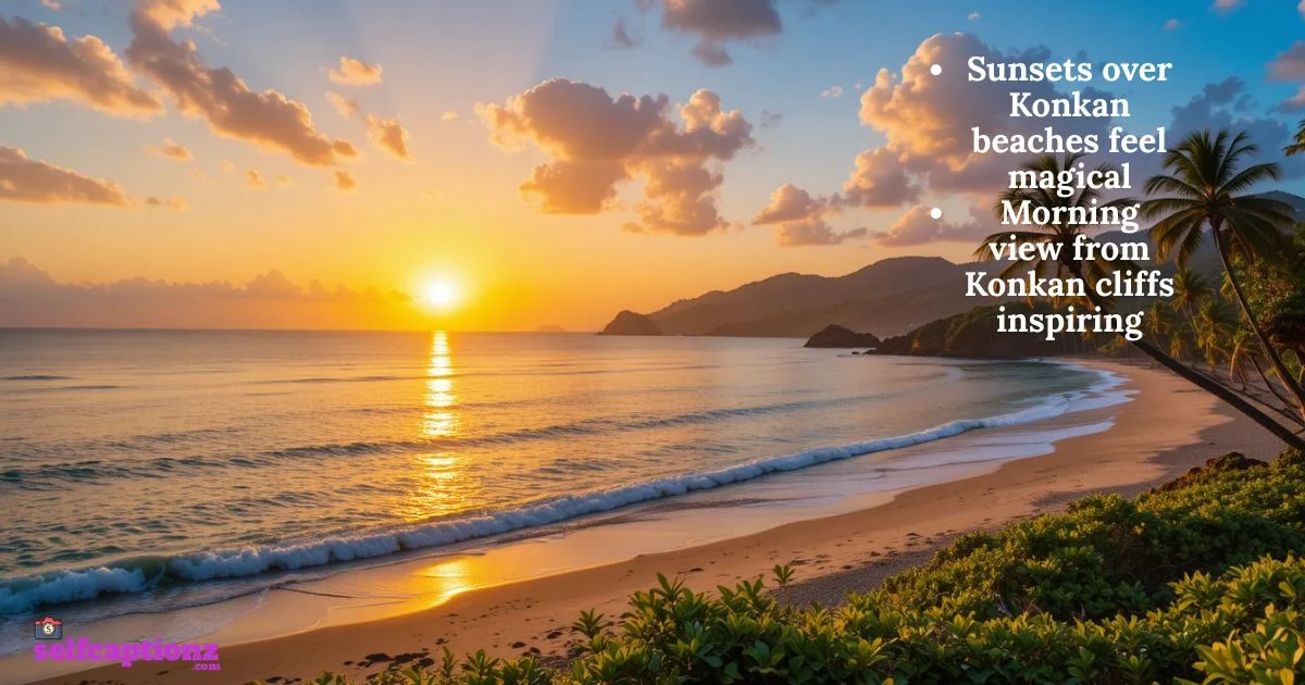 Highlight the beauty and vibe of Konkan in your posts with captions that feel genuine and scenic. Perfect for capturing sunsets, beaches, and local culture.